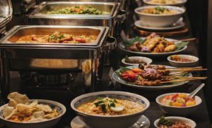 Nasi Uduk Ayam Balacan yang terdiri dari nasi harum kelapa yang disajikan dengan ayam belacan goreng, tahu goreng, sayuran, sambal bajak, kerupuk emping, dan bawang merah goreng seharga Rp 78,000++/porsi atau Anda bisa memilih Spaghetti Salmon berbahan saus Spaghetti Pomodoro yang disajikan dengan fillet salmon panggang, keju parmesan dan tomat ceri seharga Rp 88,000++/porsi.