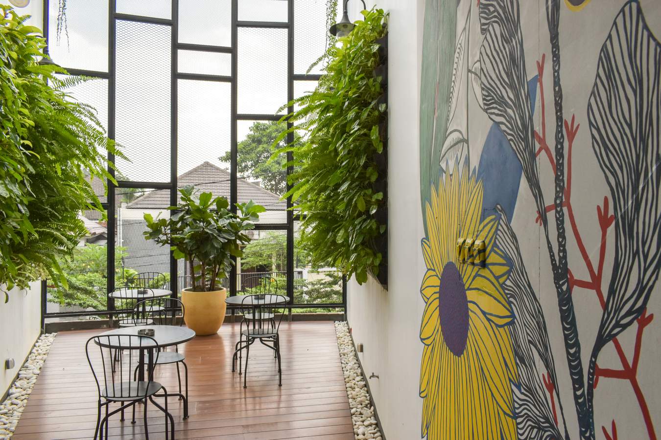 Café ini juga cocok banget buat meeting santai, hangout bareng teman, atau me-time sambil nikmati sore Jakarta dengan pemandangan hijau yang menyejukkan.