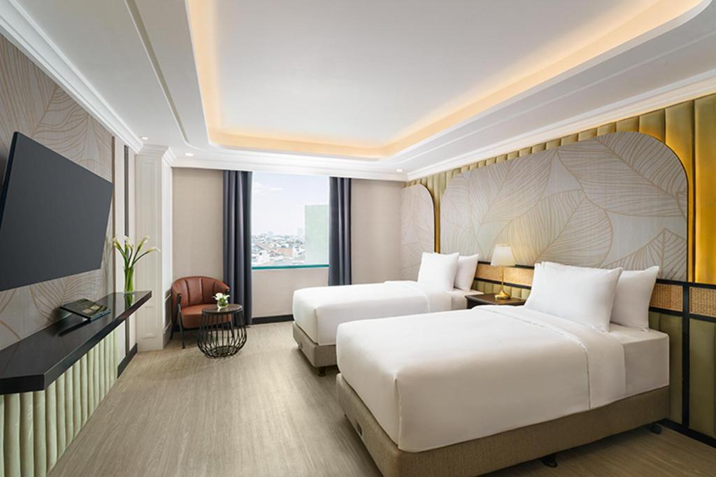 Namun, jangan salah di balik nuansa heritage itu, hotel ini dilengkapi teknologi modern: smart TV, minibar, Wi-Fi cepat, dan coffee maker di setiap kamar.
