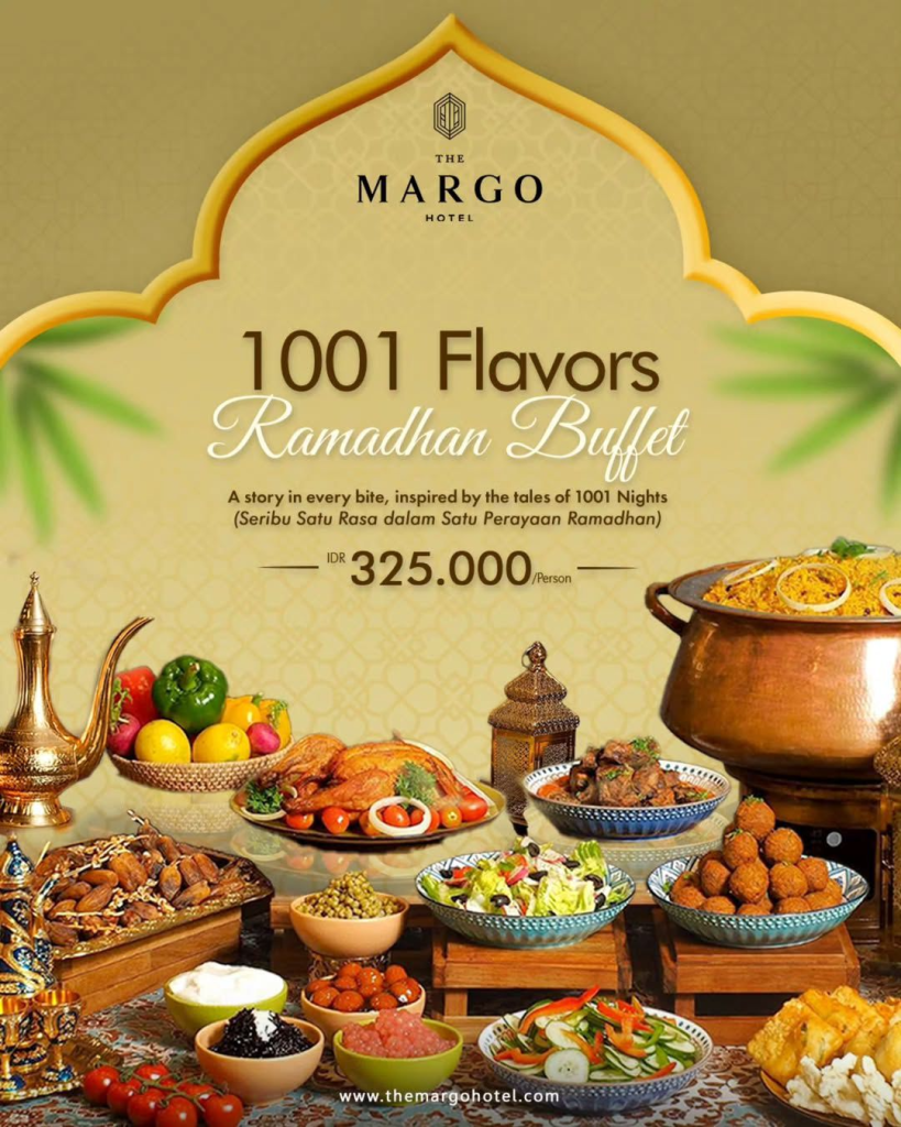 Menghadirkan paket berbuka “1001 Flavors Ramadhan Buffet” seharga IDR 325.000/person. Nikmati promo “Buy 4 Get 5” serta diskon 15% bagi pemegang kartu Mandiri, BRI, dan member Margocitizen. Sajian ini terinspirasi dari kisah 1001 malam dengan “Seribu Satu Rasa dalam Satu Perayaan Ramadhan”. Informasi & Reservasi: +62812 9692 4164.