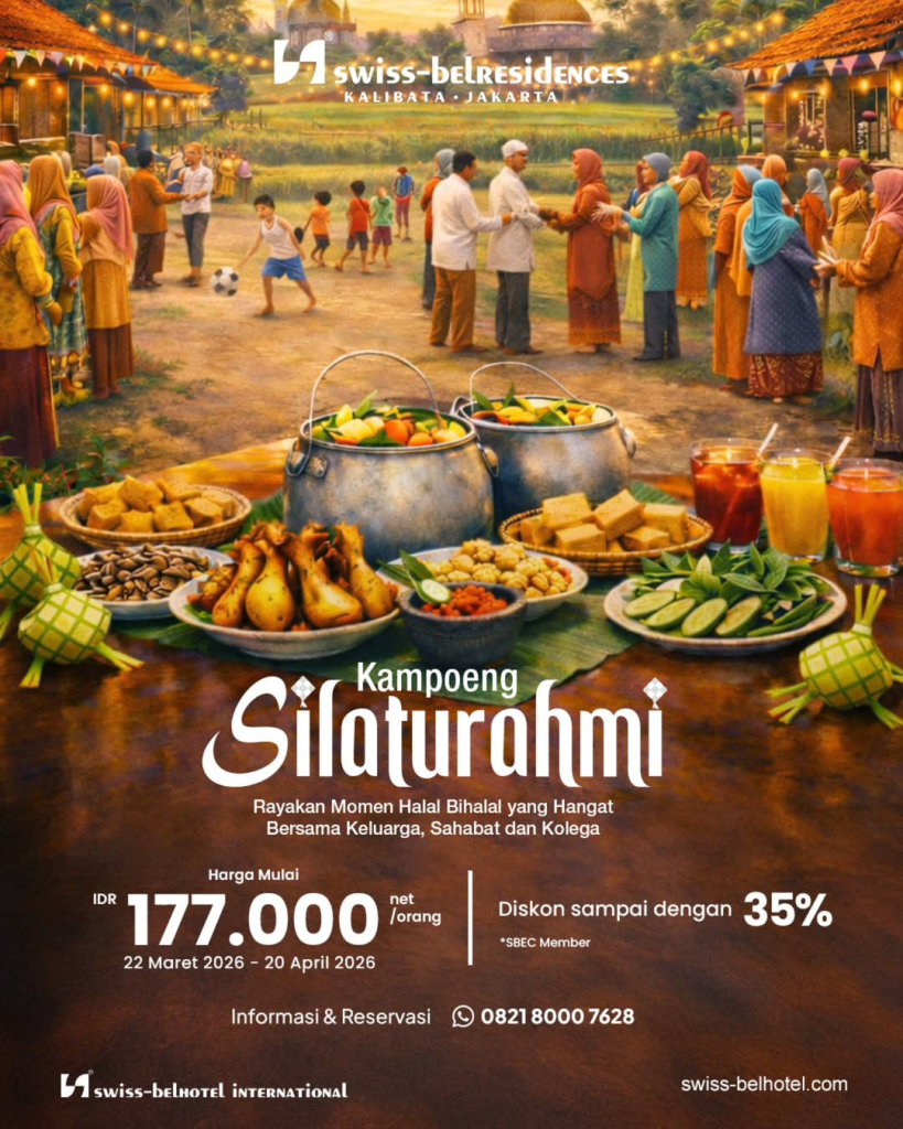 Swiss-Belresidences Kalibata menawarkan paket berbuka “Kampoeng Ramadan” seharga IDR 259.000 net/orang dengan diskon 10% di minggu pertama, serta paket “Kampoeng Kajian” mulai dari IDR 6 juta net/20 orang, dan paket Halal Bihalal “Kampoeng Silaturahmi” seharga IDR 177.000 net/orang. Setiap pembelian akan didonasikan sebesar IDR 10.000 dan reservasi dapat dilakukan melalui WhatsApp di 0821 8000 7628.