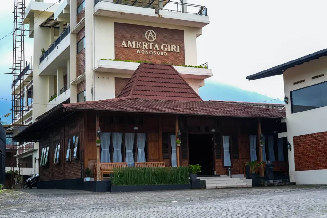 Secara visual, bangunan Amerta Giri mengusung konsep modern minimalis yang dirancang khusus untuk menyatu dengan lanskap pegunungan Wonosobo. Bentuk bangunannya yang bertingkat memungkinkan setiap tamu mendapatkan sudut pandang yang luas ke arah perbukitan hijau di sekitarnya.